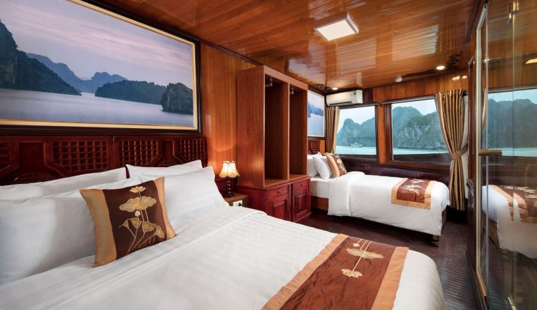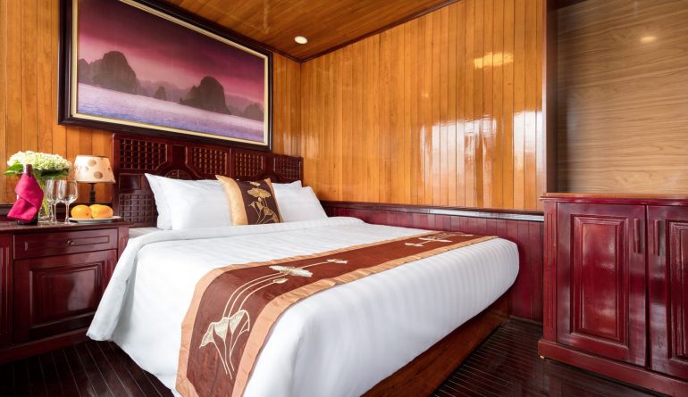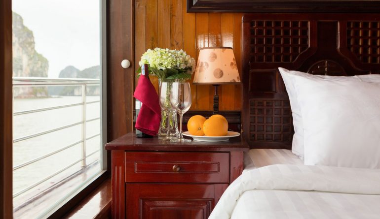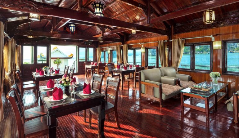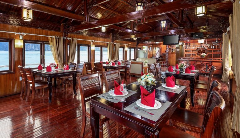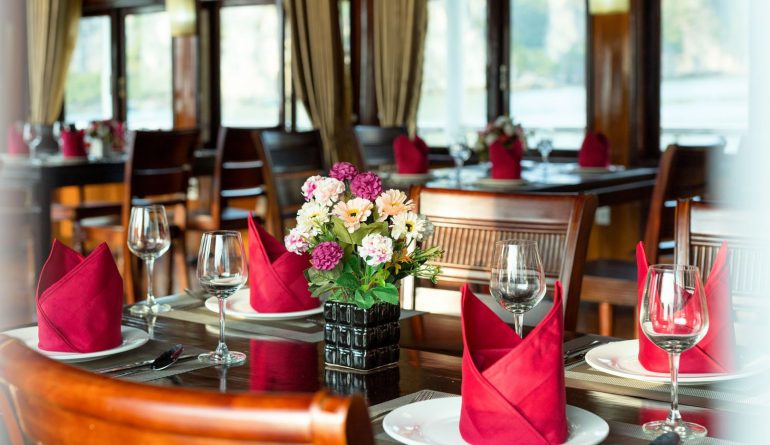 13h00: Thưởng thức bữa trưa đặc biệt với các món ăn truyền thống của Việt Nam trong khi du ngoạn trên Vịnh Hạ Long tráng lệ, chiêm ngưỡng những khối đá kỳ thú trong vịnh.