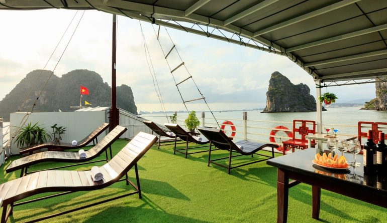 17h30: Quay trở lại du thuyền. Thư giãn trên hiên tắm nắng, ngắm hoàng hôn trên những chiếc ghế dài thoải mái trong khi uống một ly cocktail hoặc đọc một cuốn sách trong khoảnh khắc kỳ diệu nhất.