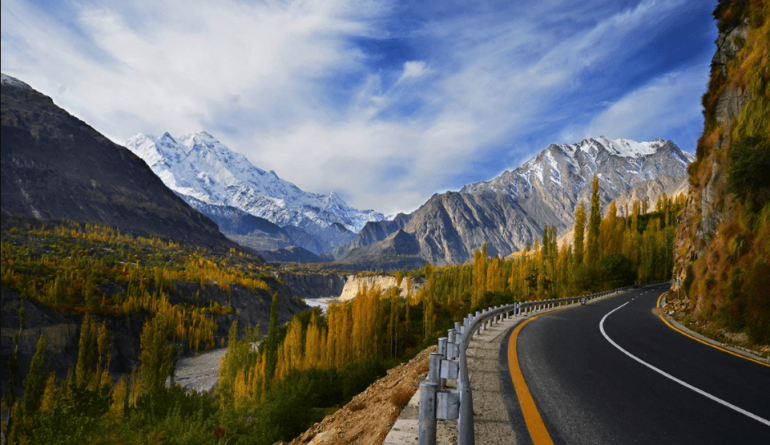 - Từ cuối tháng 5 đến cuối tháng 10, nếu thời tiết cho phép đi qua đèo Babusar, xe sẽ đi theo tuyến đường này. Tổng thời gian di chuyển 12h. Trường hợp đèo đóng cửa, đoàn sẽ di chuyển qua hướng Besham với thời gian dự kiến là 14h cho quãng đường 480km