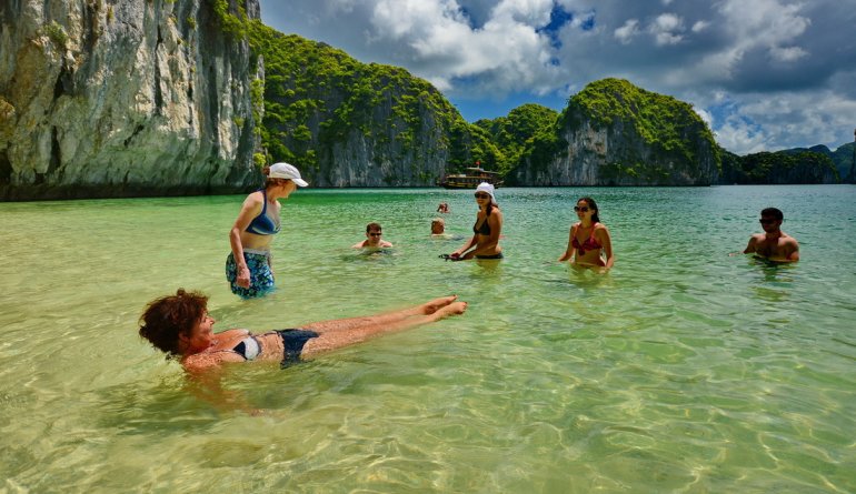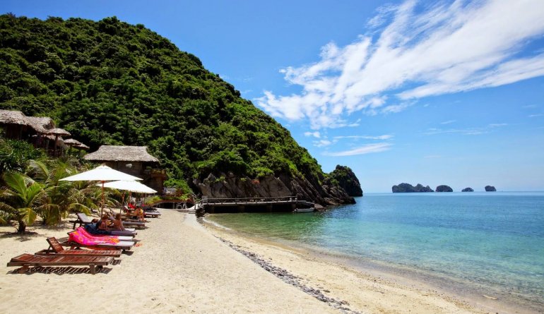 vịnh Lan Hạ, ghé thăm các bãi tắm đẹp nhất ở đây như là: bãi tắm Cát Cò 1, Cát Cò 2 với làn nước trong xanh,