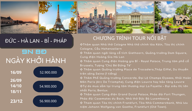 TOUR DU LỊCH TRỌN GÓI CHÂU ÂU ĐỨC – HÀ LAN – BỈ – PHÁP ( BAMBOO AIRWAYS)