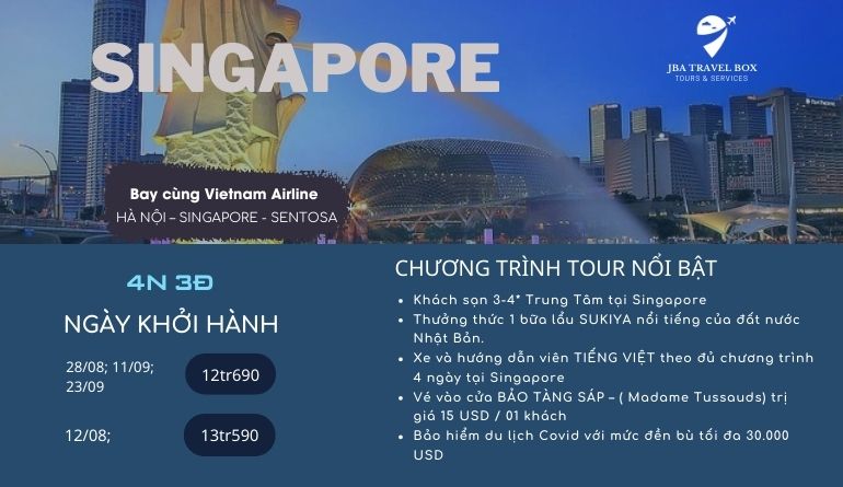 - Đoàn tự do mua sắm cho đến giờ xe và hướng dẫn viên đưa đoàn ra ra sân bay quốc tế Changi - Singapore làm thủ tục đáp chuyến bay VN660 lúc 13h05 về Hà Nội.