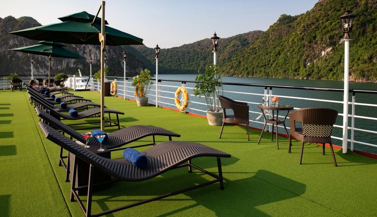 17:30 – 18:30: Quý khách quay lại du thyền để tự do giải trí, ngắm hoàng hôn, bể bơi ngoài trời và thưởng thức trà chiều, trái cây tươi.