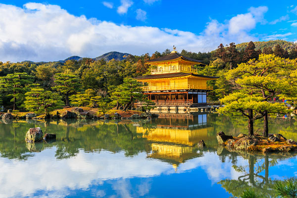 - Đền Kinkakuji hay còn gọi là “Ngôi đền vàng” ban đầu là một khu nhà nghỉ của tướng Ashikaga, tổng tư lệnh dưới thời Muromachi (1336 – 1573). Sau khi ông chết, ngôi nhà trở thành một ngôi đền được dát toàn vàng lá. Ngôi đền bị phá hủy vào năm 1950 và được khôi phục lại vào năm 1955. Du khách sẽ có dịp tìm hiểu về nền văn hóa rực rỡ thời Muromachi, cùng với những thiết kế kiến trúc rất độc đáo của người Nhật