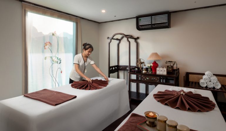 tại nhà hàng trên du thuyền. Quý khách có thể sử dụng dịch vụ massage trên tàu. Quý khách vui lòng đặt trước với quản lý tàu để sử dụng dịch vụ.