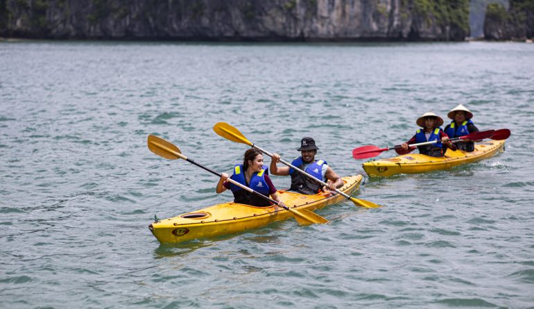 13:00 - 14:00 Quý khách sẽ cùng hướng dẫn viên chèo thuyền kayak quanh